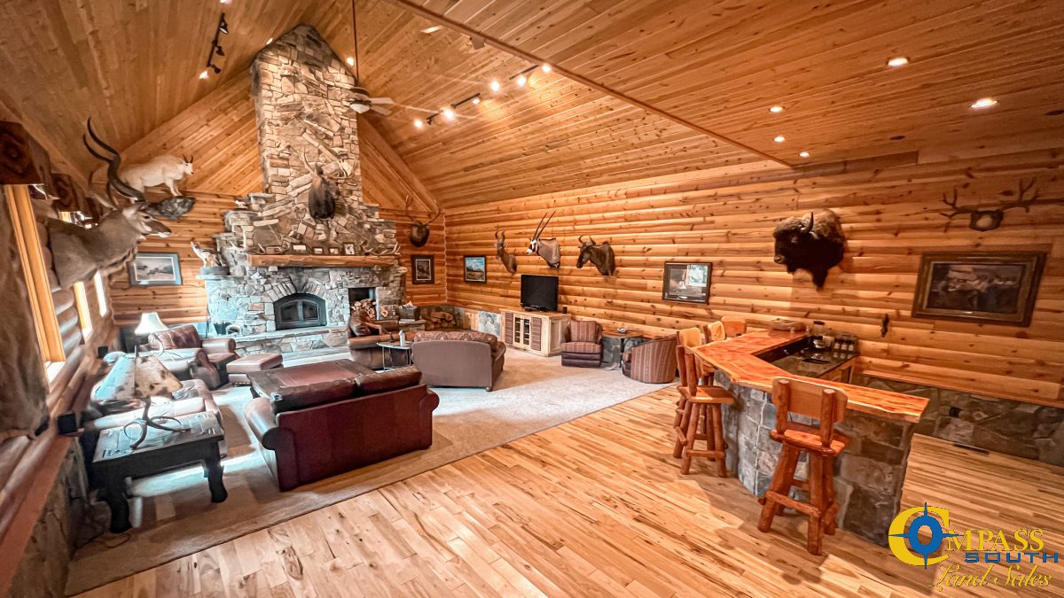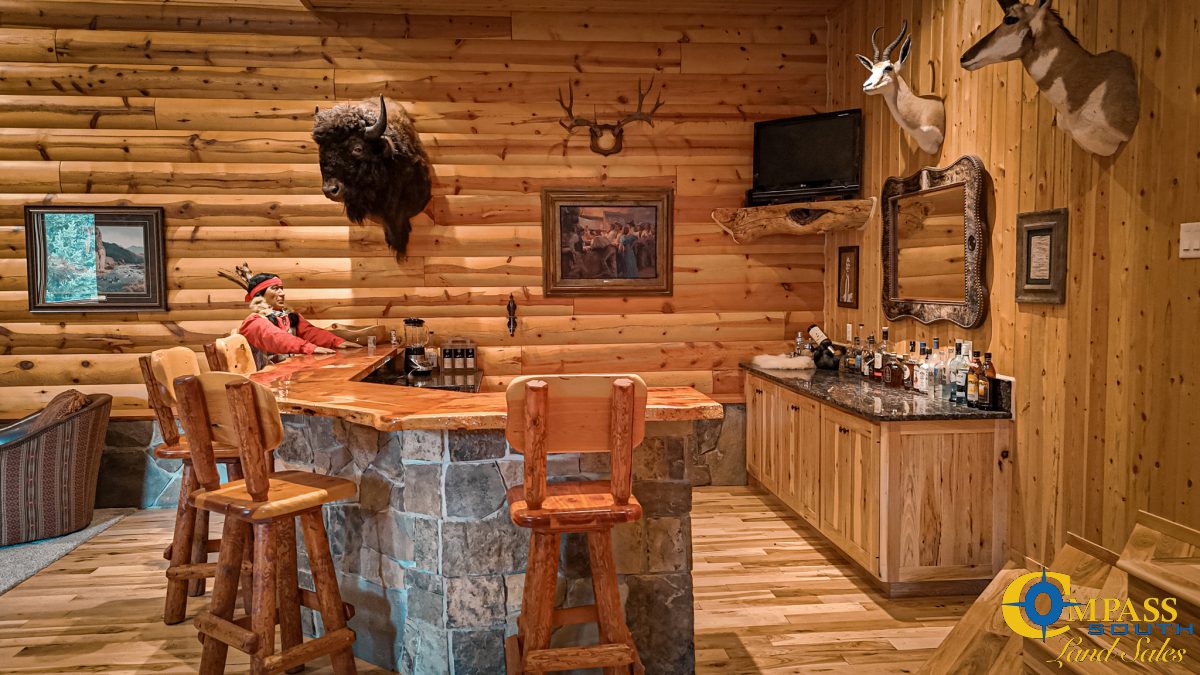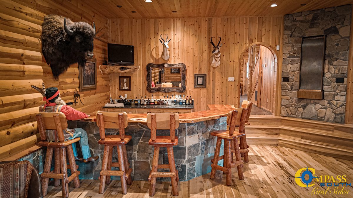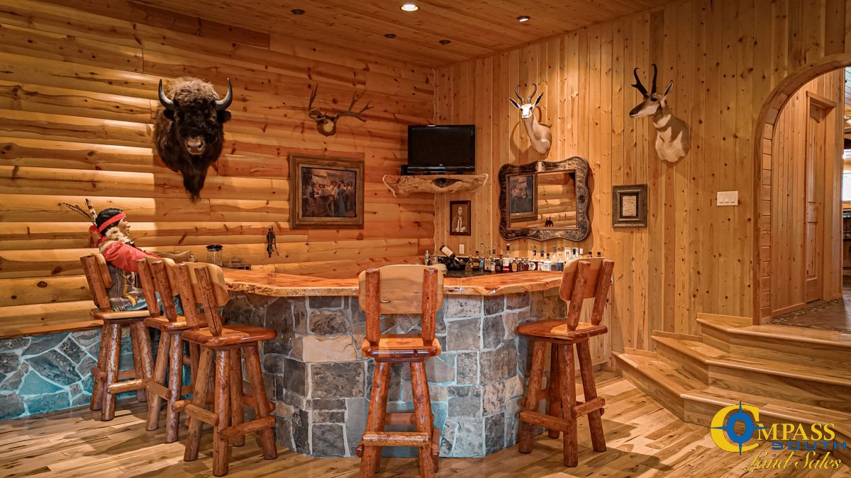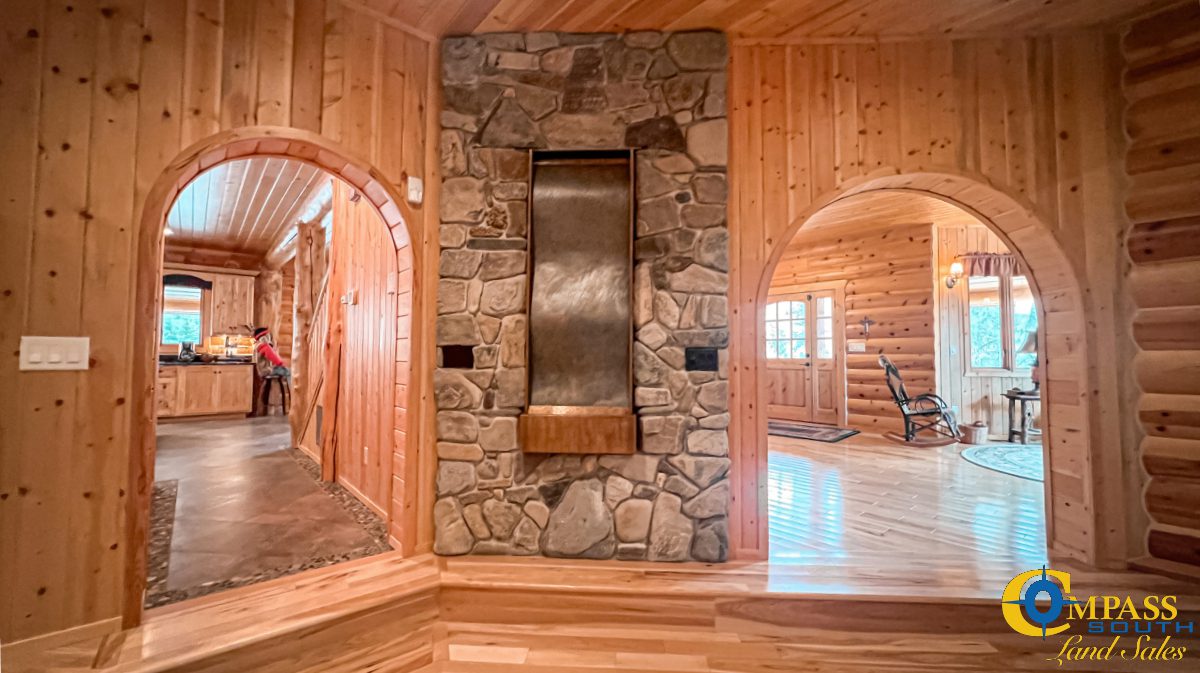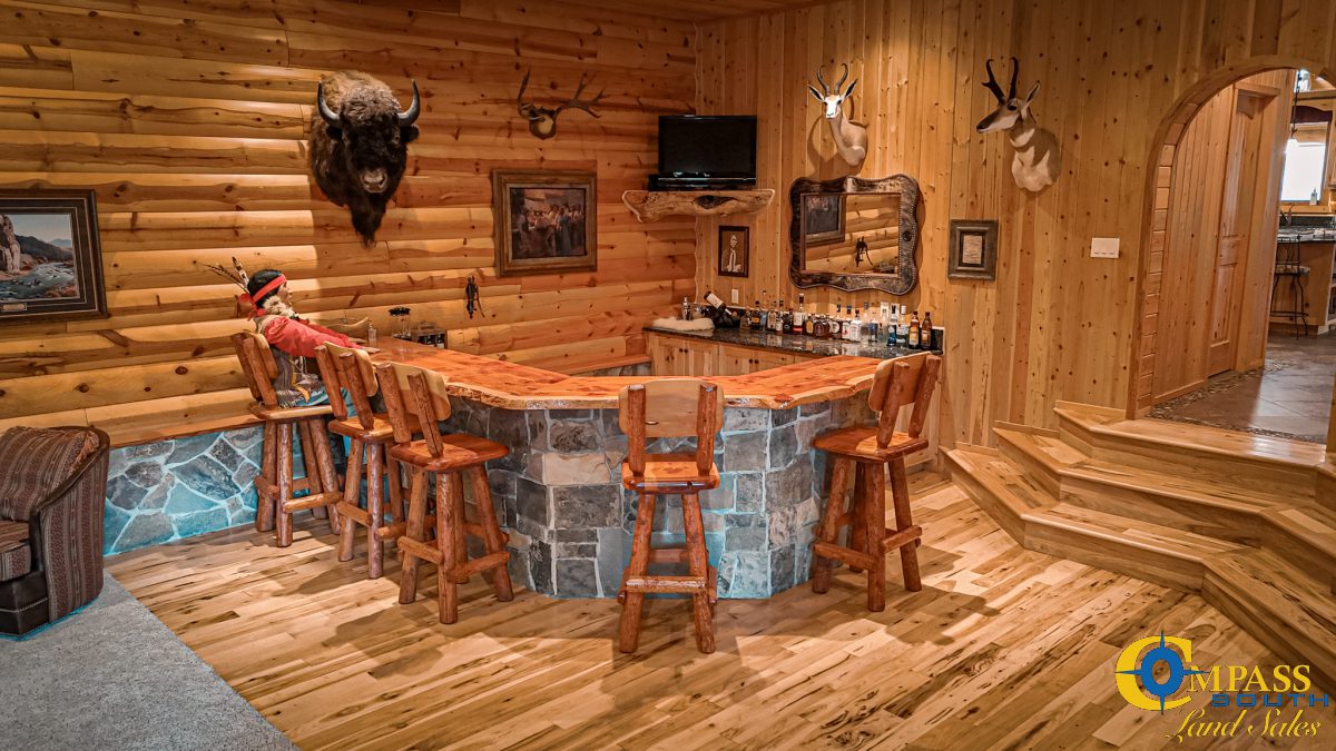 Step inside to an inviting open-concept layout. The floorplan is highlighted by a grand stone fireplace, elegant stone countertops, and a stylish wet bar. It’s the perfect space for entertaining. A one-of-a-kind copper water feature anchors the living space and adds a touch of serene sophistication. Generously sized rooms and thoughtful design create a seamless indoor experience that complements the expansive natural surroundings.